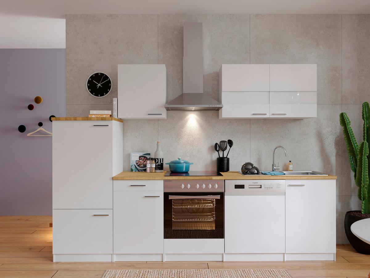 Respekta Küchenzeile ohne Geräte B: 280 cm Weiß/Nussbaum Dekor, modern