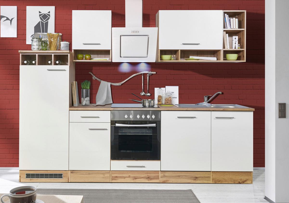 Respekta Küchenzeile ohne Geräte B: 280 cm Weiß/Wildeiche Dekor