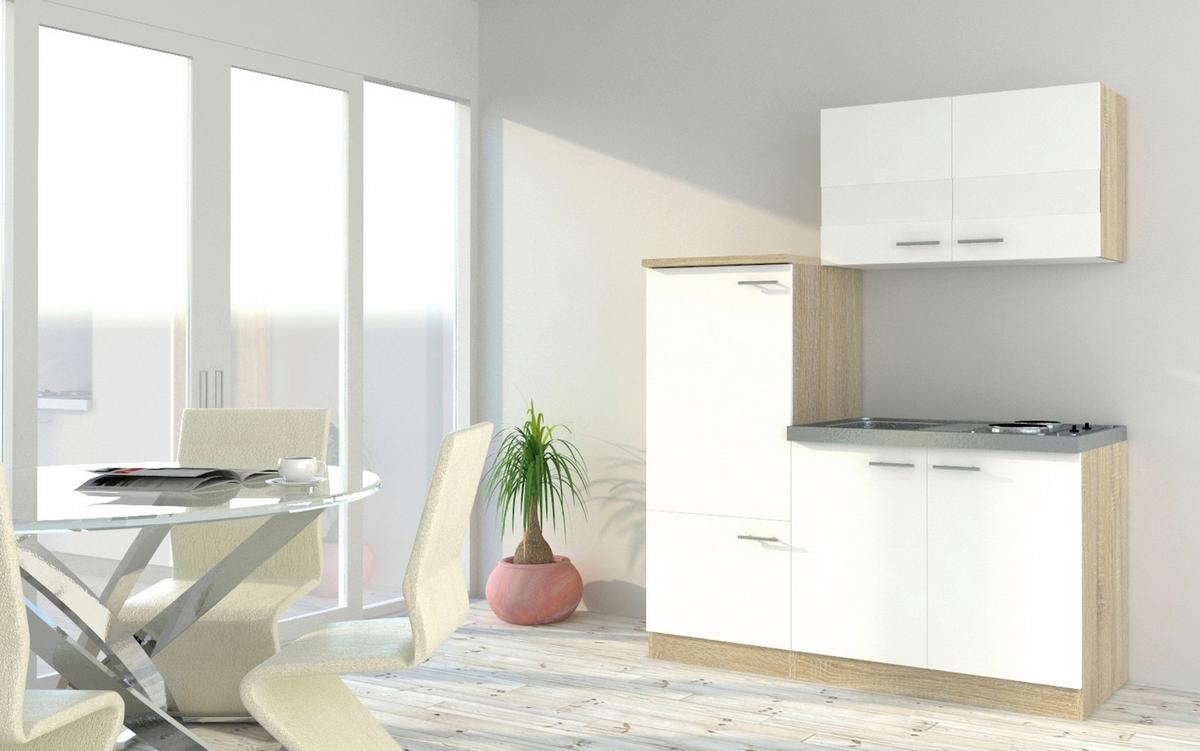 Respekta Miniküche m. Kühlschrank + Kochfeld 160 cm Weiß/Eiche