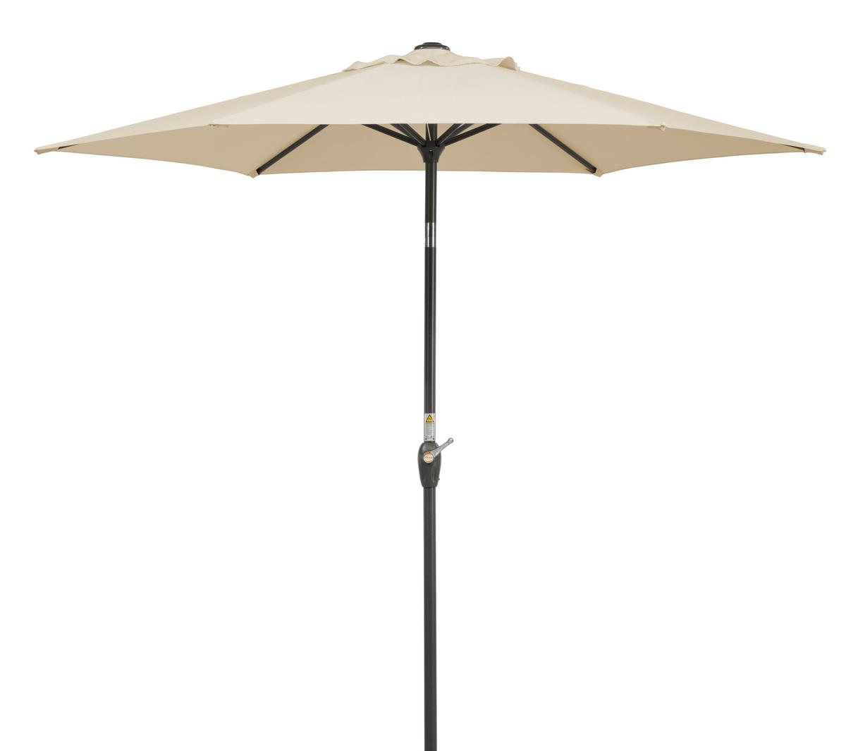 Geeignet für kleine bis mittelgroße Flächen: Runder Sonnenschirm in Naturfarben