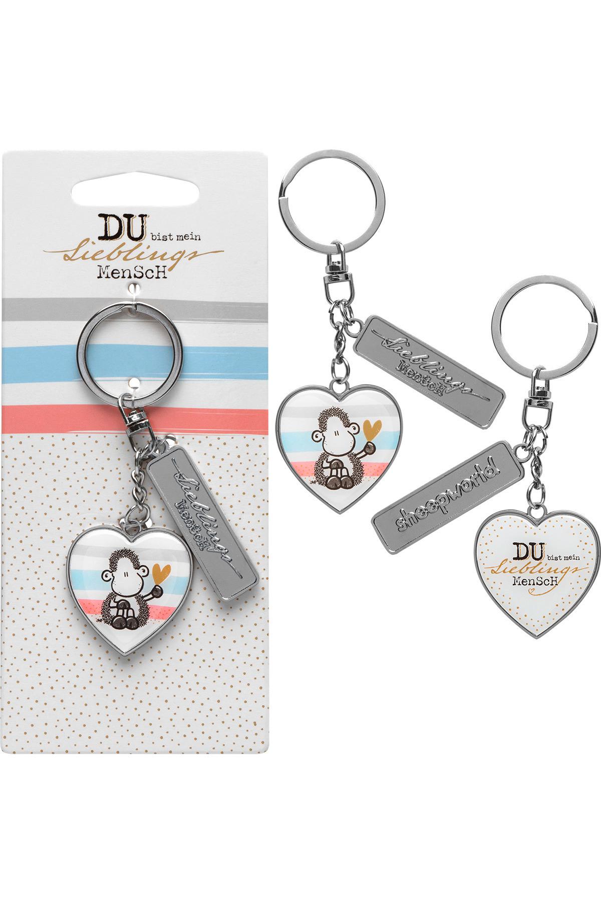 Für die Liebsten: herzförmiger Schlüsselanhänger mit Schriftzug und Schafs-Motiv