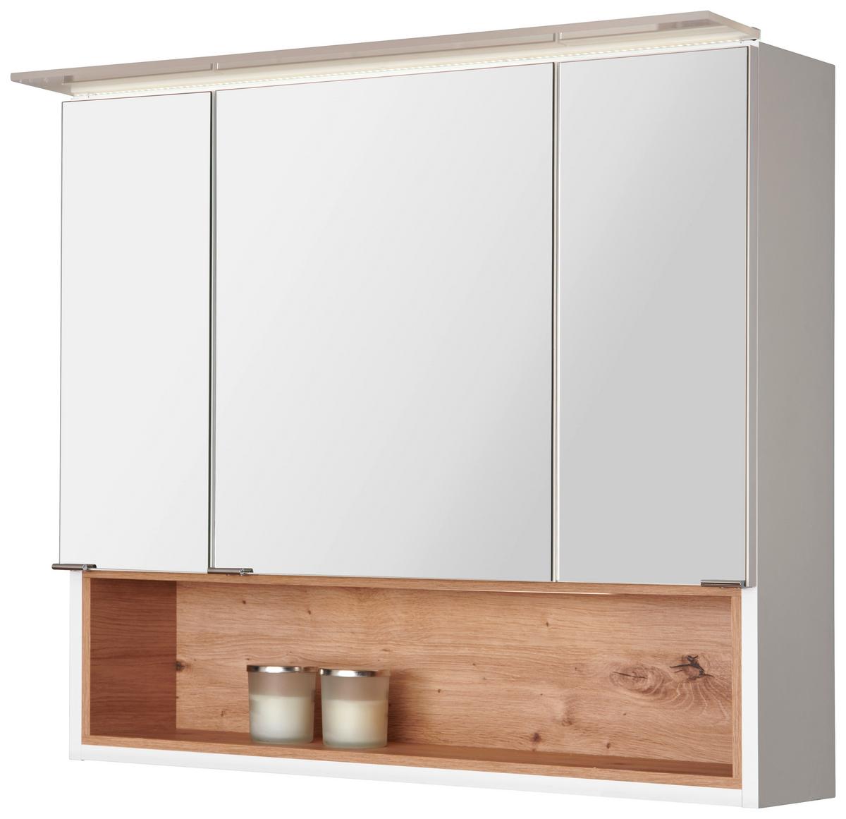 Spiegelschrank in Weiß und Eiche ca. 80 cm breit – mit Beleuchtung