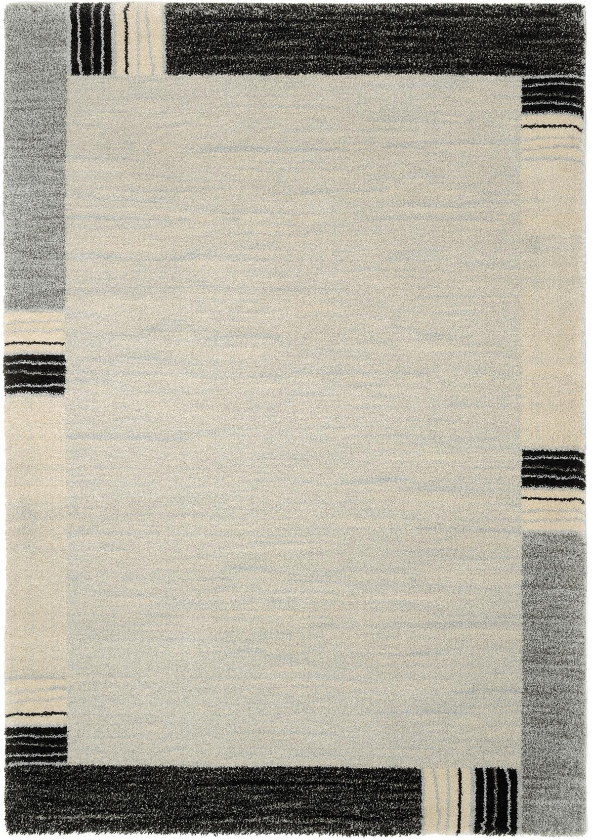 Eine rahmende Bordüre und die ansprechende Farbgebung in Grau vermitteln moderne Eleganz. Für ein angenehmes Gefühl sorgt die Florhöhe von ca. 20 mm.