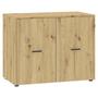 Individueller Stauraum für Schlafzimmer, Gästezimmer oder Jugendzimmer: Der zweitürige Unterbauschrank KIVO in Eiche Artisan Dekor mit schwarzen Bügelgriffen ist ca. 90 cm breit, ca. 69,8 cm hoch und ca. 52,1 cm tief. Im Inneren befindet sich ein Einlegeboden.