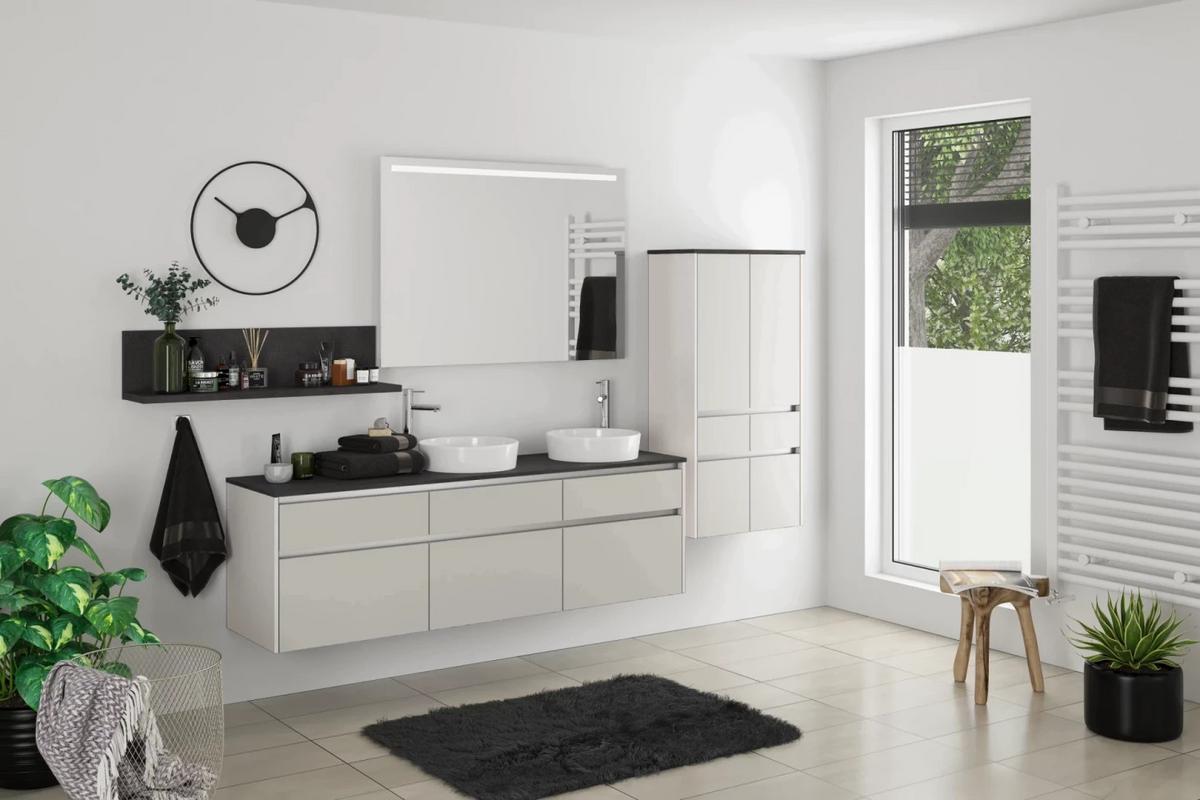 Badmöbel-Set 5-Tlg. Fontana B: ca. 300 cm Grau/Schwarz