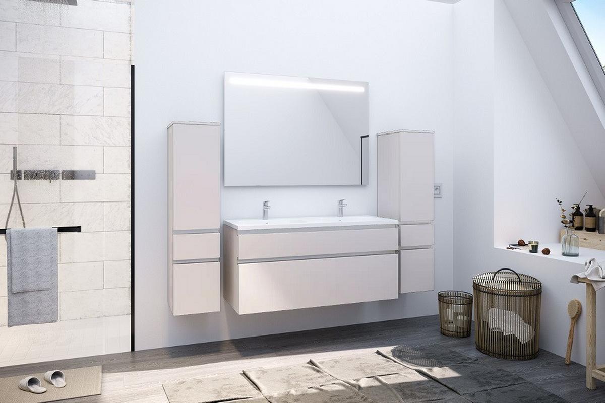 - ElementeSpiegel, Waschtisch, Doppel-Waschbecken, 2 Hochschränke