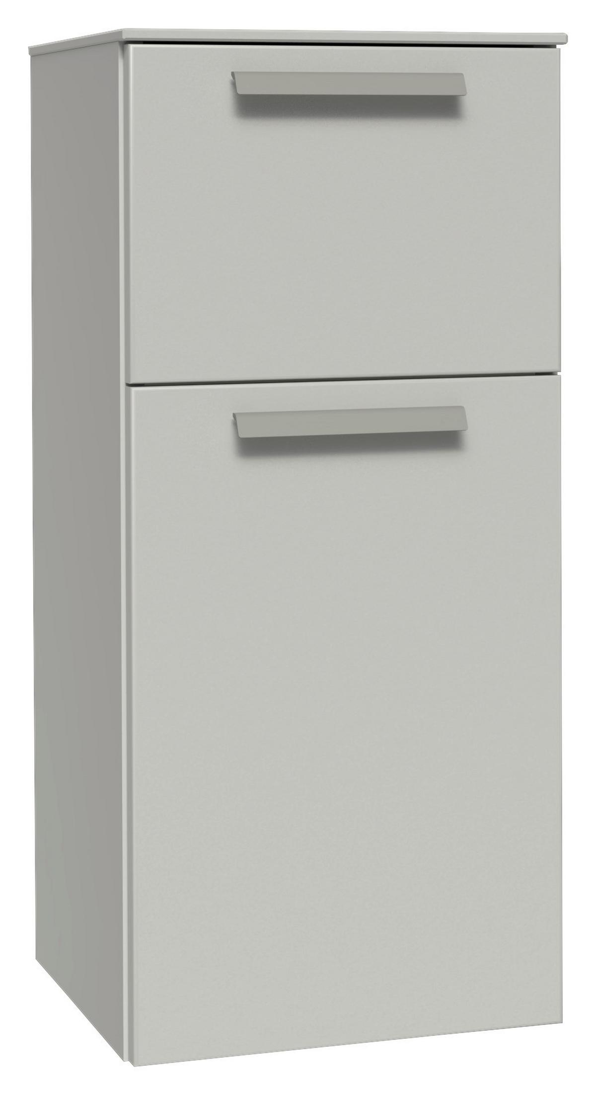 Elegant, geräumig und modern: Der seidengraue Midischrank LAS VEGAS von VERTICO erweitert den Stauraum im Bad. Das ca. 40 cm breite Möbelstück überzeugt mit zwei Türen, die mit edelstahlfarbenen Steggriffen geöffnet werden. Inklusive Soft-Close-System!
