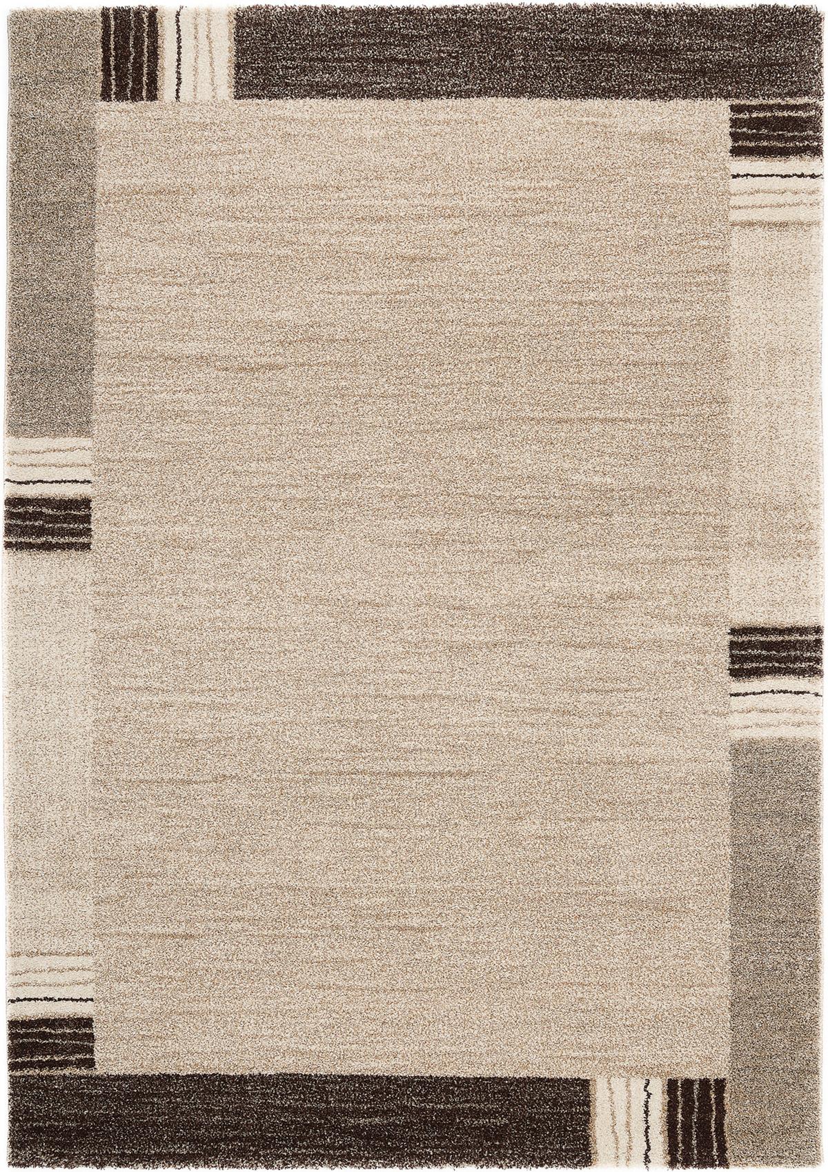 Eine rahmende Bordüre und die ansprechende Farbgebung in Beige-Braun vermitteln moderne Eleganz. Für ein angenehmes Gefühl sorgt die Florhöhe von ca. 20 mm.