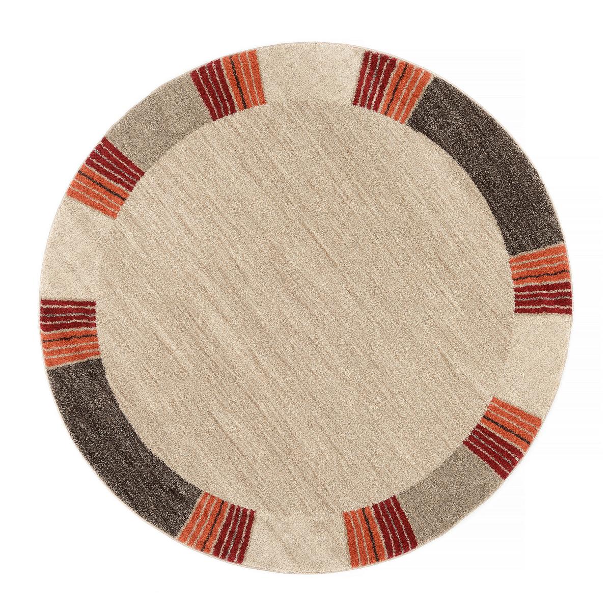 ca. 160 cm (Durchmesser) große Teppich besticht durch die Kombination von