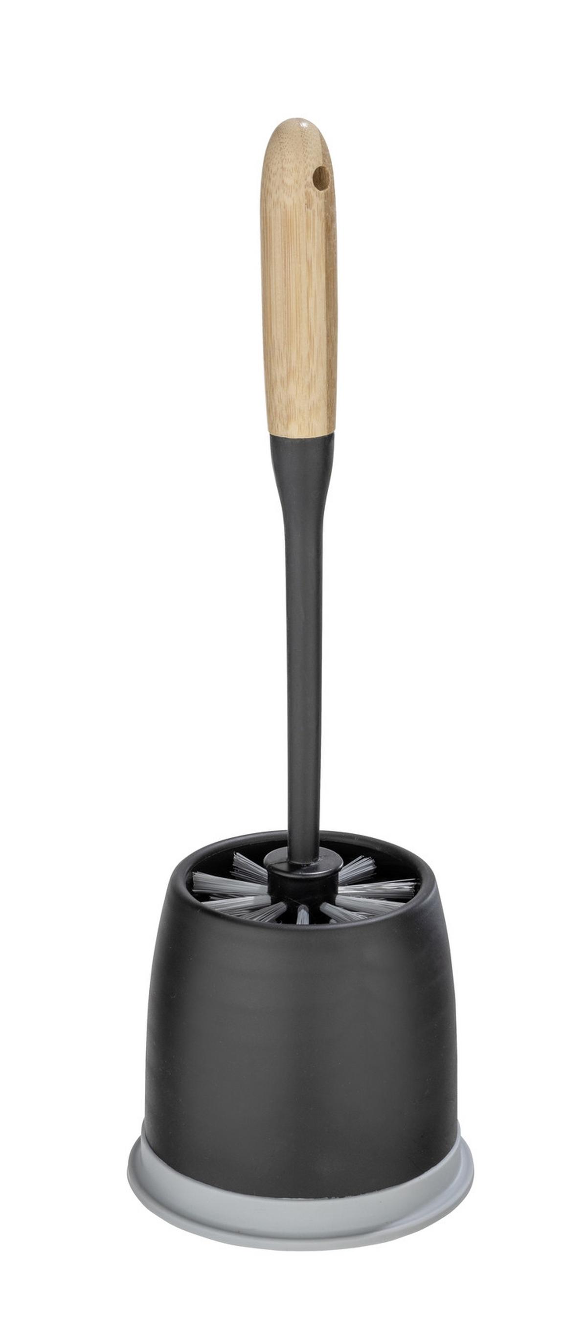 Die WC-Bürstengarnitur ALLSTAR BELLAGIO der Marke WENKO ist ein praktischer wie stilvoller Helfer für Ihr Badezimmer. Die Garnitur besteht aus einem schwarzen Kunststoffbehälter, der Bürstenstiel ist ebenfalls aus Kunststoff in Schwarz gefertigt und verfügt über einen Griff aus naturfarbenbem Bambusholz.