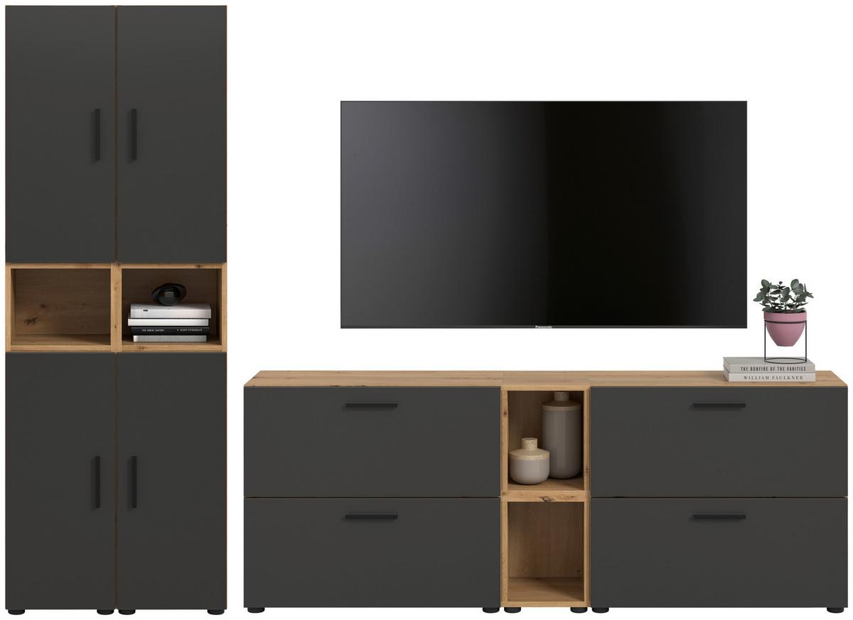 - Wohnwand Arila 6-Teilig Anthrazit/Eiche Dekor B: 190cmZum Produkt