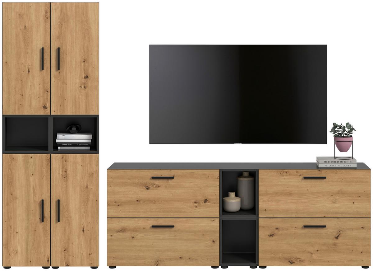 - Wohnwand Jake Anthrazit/ Eiche Artisan Dekor B: 334,7cmZum Produkt