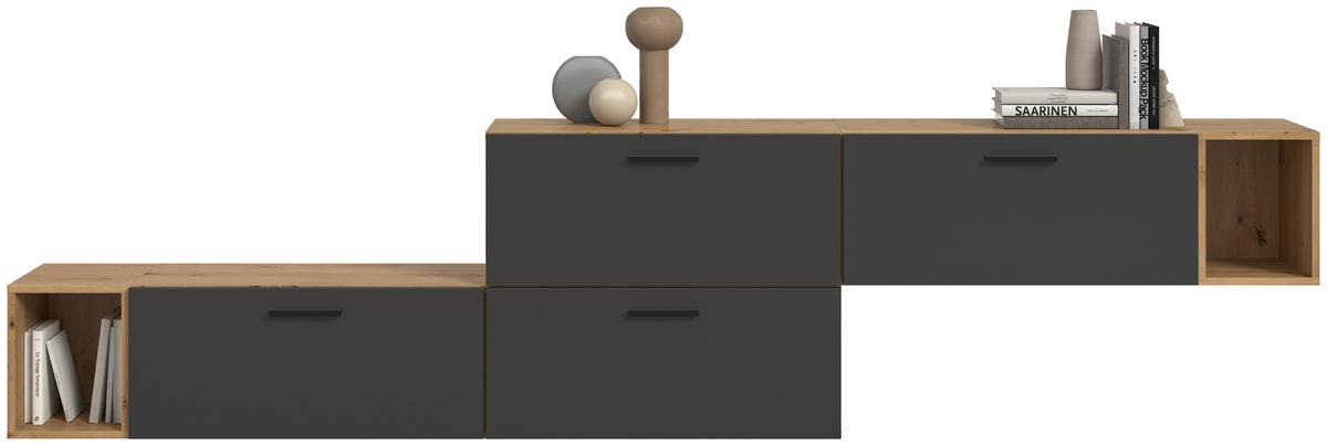 - Wohnwand Caneva Anthrazit/Eichefarben B: 268cmZum Produkt