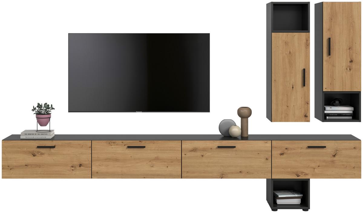 Wohnwand, The One 7, B: 300 cm Artisan Eiche Dekor/Grau