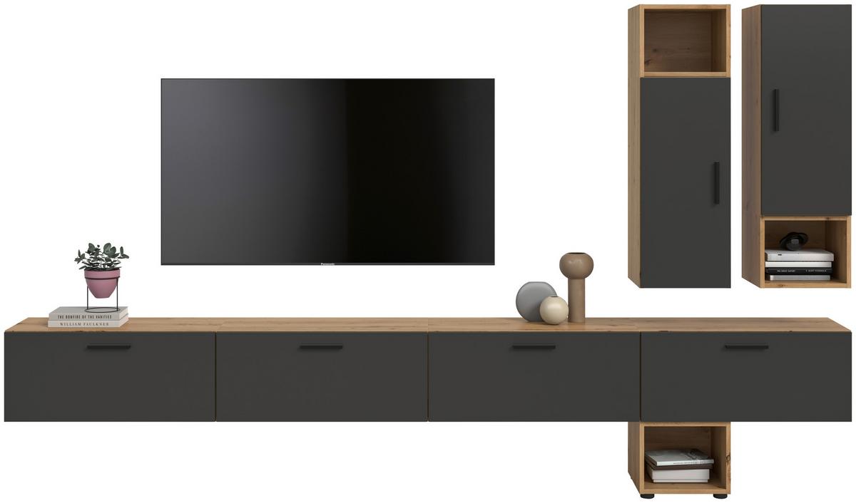 Wohnwand, The One 7, B: 300 cm Grau/Artisan Eiche Dekor