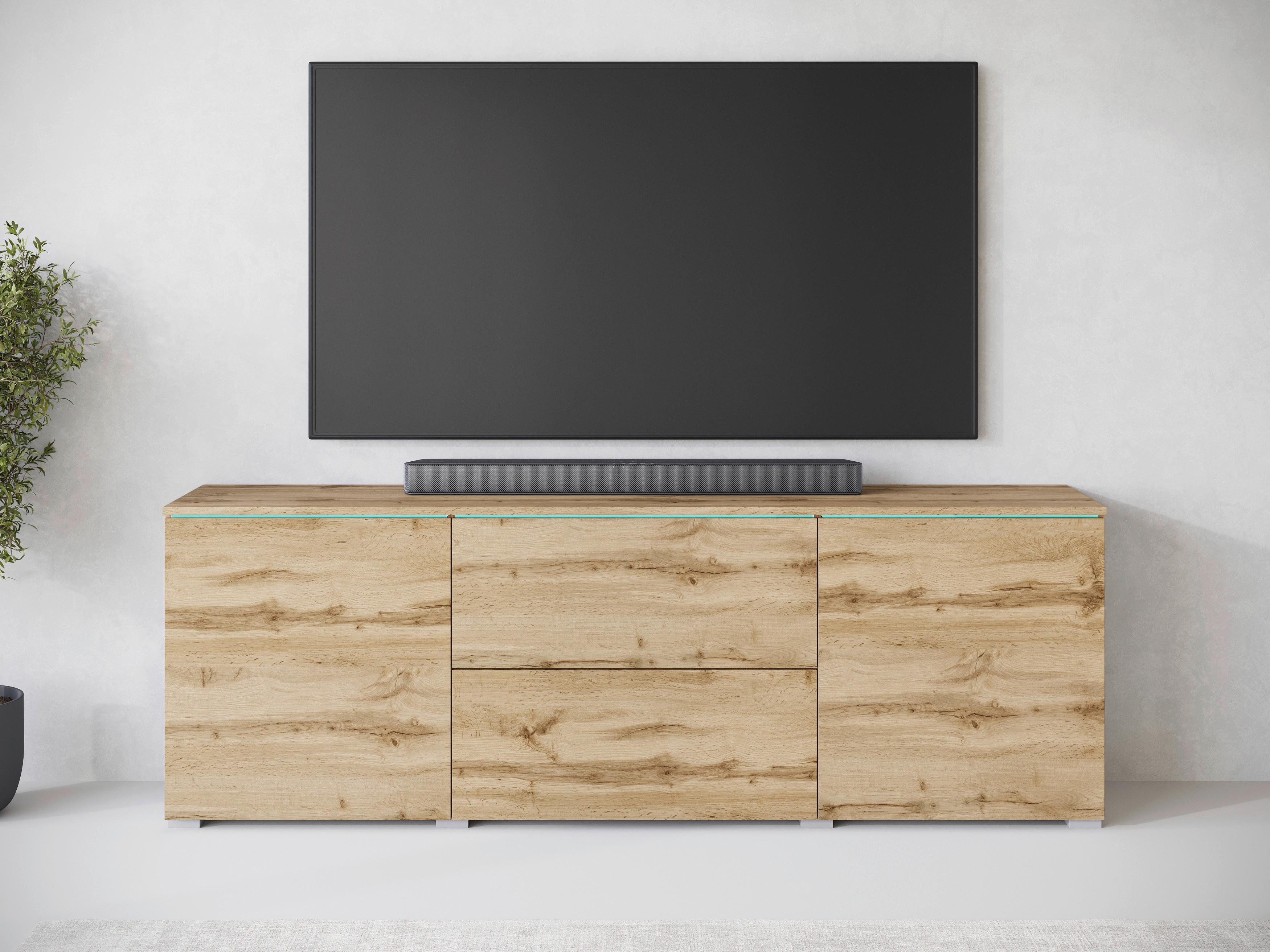 • Lowboard mit LED-Beleuchtung: Eine dezente Hintergrundbeleuchtung ist hier bereits inkludiert. Je nach Lichtfarbe wird damit der Abend zu zweit auf der Couch noch stimmungsvoller.