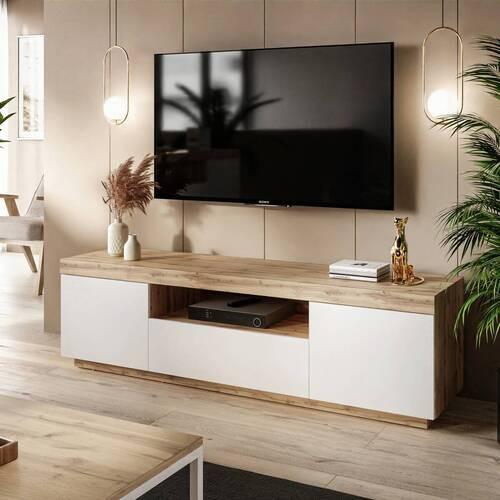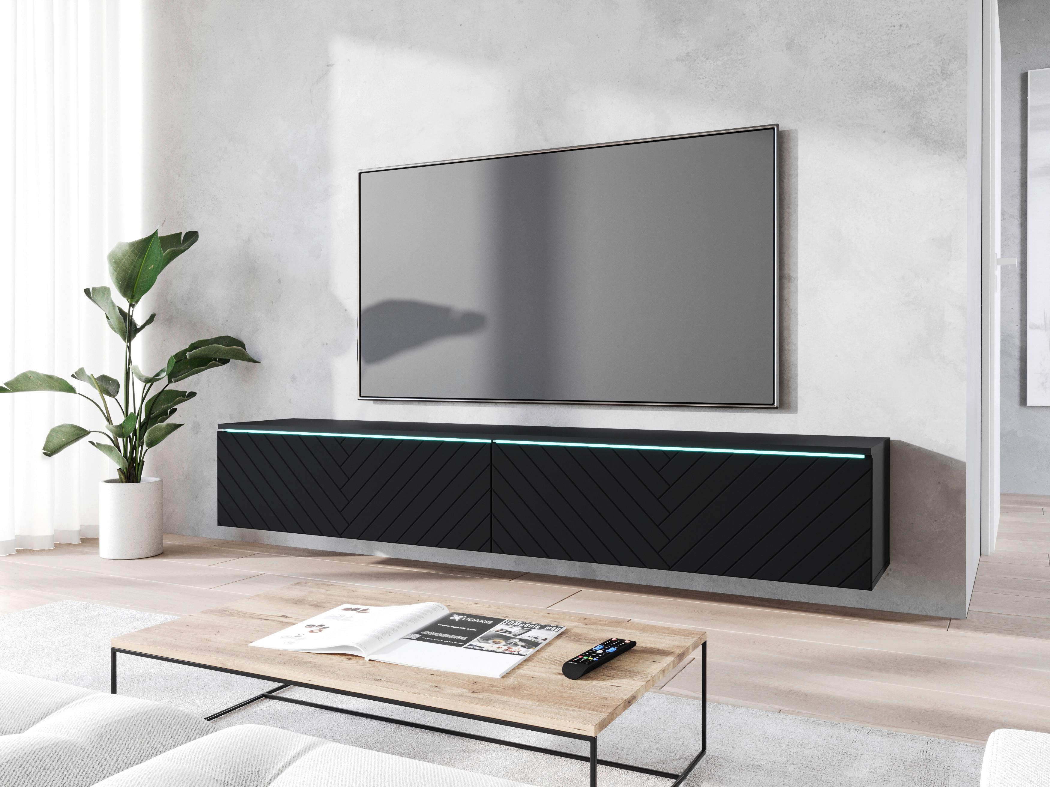 • Lowboards sind in der Regel niedriger und flacher. Sie bieten eine modernere, minimalistische Ästhetik und sind oft so konzipiert, dass der Fernseher in einer sehr niedrigen Position steht oder an der Wand darüber montiert wird.